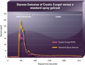 According to Scott Bader’s R & D team, Ecogel S1PA has been independently laboratory tested and proven to be able to cut total styrene emissions by over 55%. It has also been extensively tested by a number of key customers including LM Wind Power, whose senior Manager for global equipment engineering Dan Lindvang stated: “LM Wind Power now uses Scott Bader’s ultra-low styrene gelcoat product in its plants globally. We have seen a major reduction of more than 50% in styrene emissions during spray gelcoat application, without any loss of performance and using the same standard spray equipment and catalysts as with conventional gelcoats. The use of Scott Bader’s ultra-low styrene Ecogel gelcoat has enabled LM Wind Power to greatly improve the environment for our workers and meet our own demanding in-house HSE standards.”