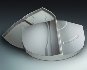 The sheet offers Izod impact resistance of 18 ft lbs/in (954 J/m) and an ASTM D-790 flexural modulus rating of 330,000 PSI (2275 Mpa), significantly improving the durability of formed and fabricated components versus FR-ABS and other competitive sheet, says Mellen.