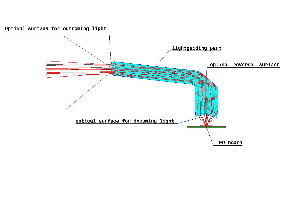 High LED light yield: sectional view of the beam path as the functional principle of the patented “Edgelight” light strip