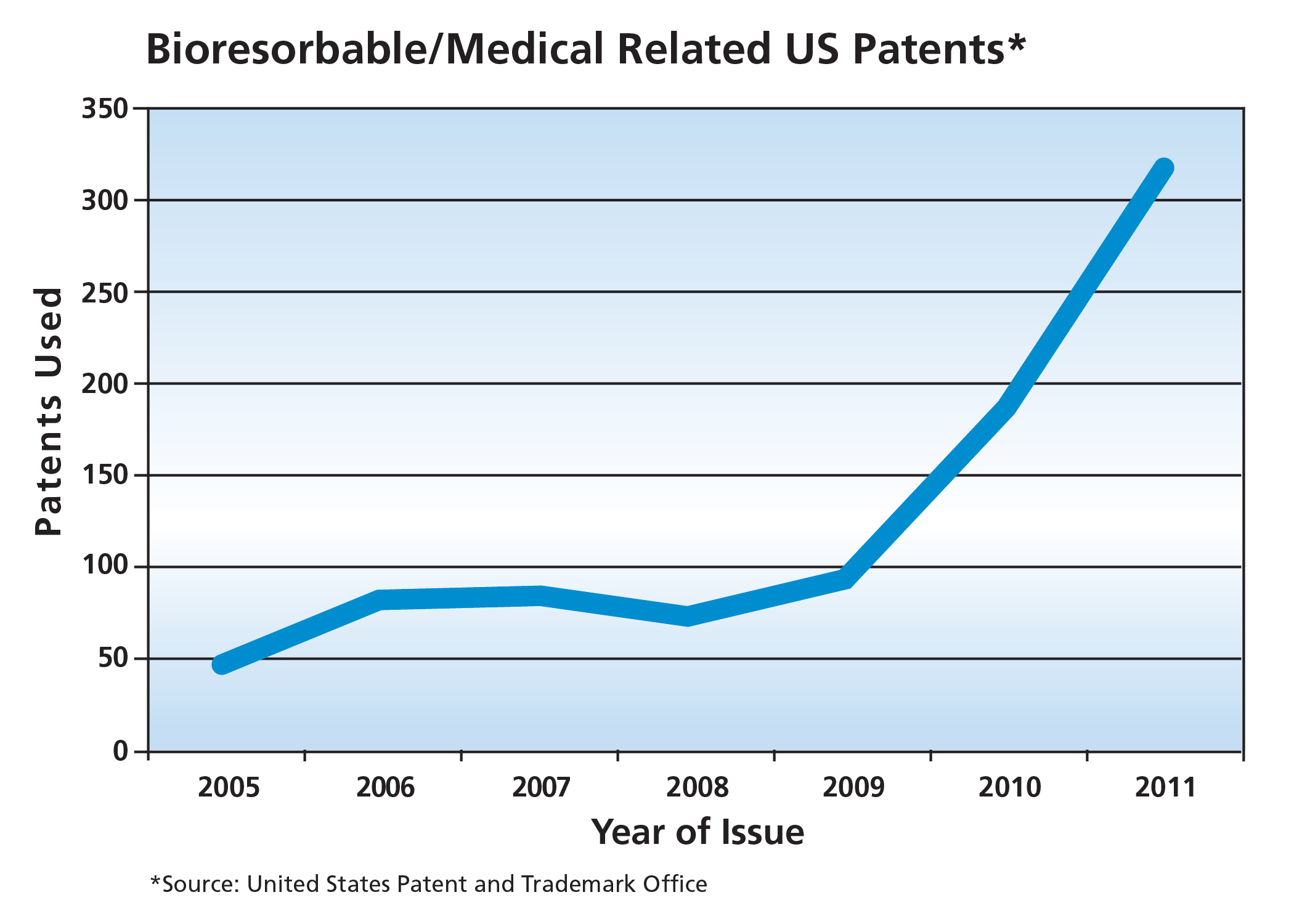 “Another example is the explosion of medical implant applications using bioresorbable polymers,” continued Acquarulo. “According to the United States Patent and Trademark Office database, the number of patents issued referencing bioresorbable and medical grew from 48 in 2005 to 311 in 2011, a rise of 548%. In 2012 there have been 229 related patents issued year to date.” For more than two decades Foster has provided custom formulated polymer blends for medical applications, including minimally invasive and implantable devices. Similar to the dynamic growth of polymers and applications in minimally invasive devices at the end of the last century, Foster notes that the first decade of this century has seen similarly dynamic growth in polymers and applications for human implants.
